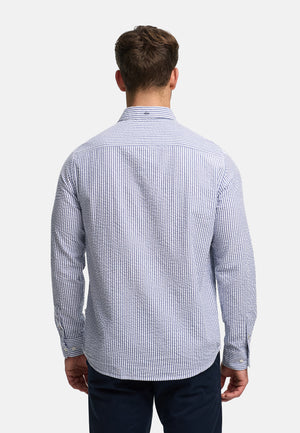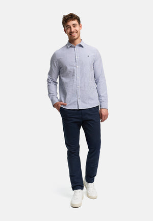 - Schmal geschnittenes Langarm-Hemd mit feinem Streifenmuster. Dezente Logostickerei auf Brusthöhe.
