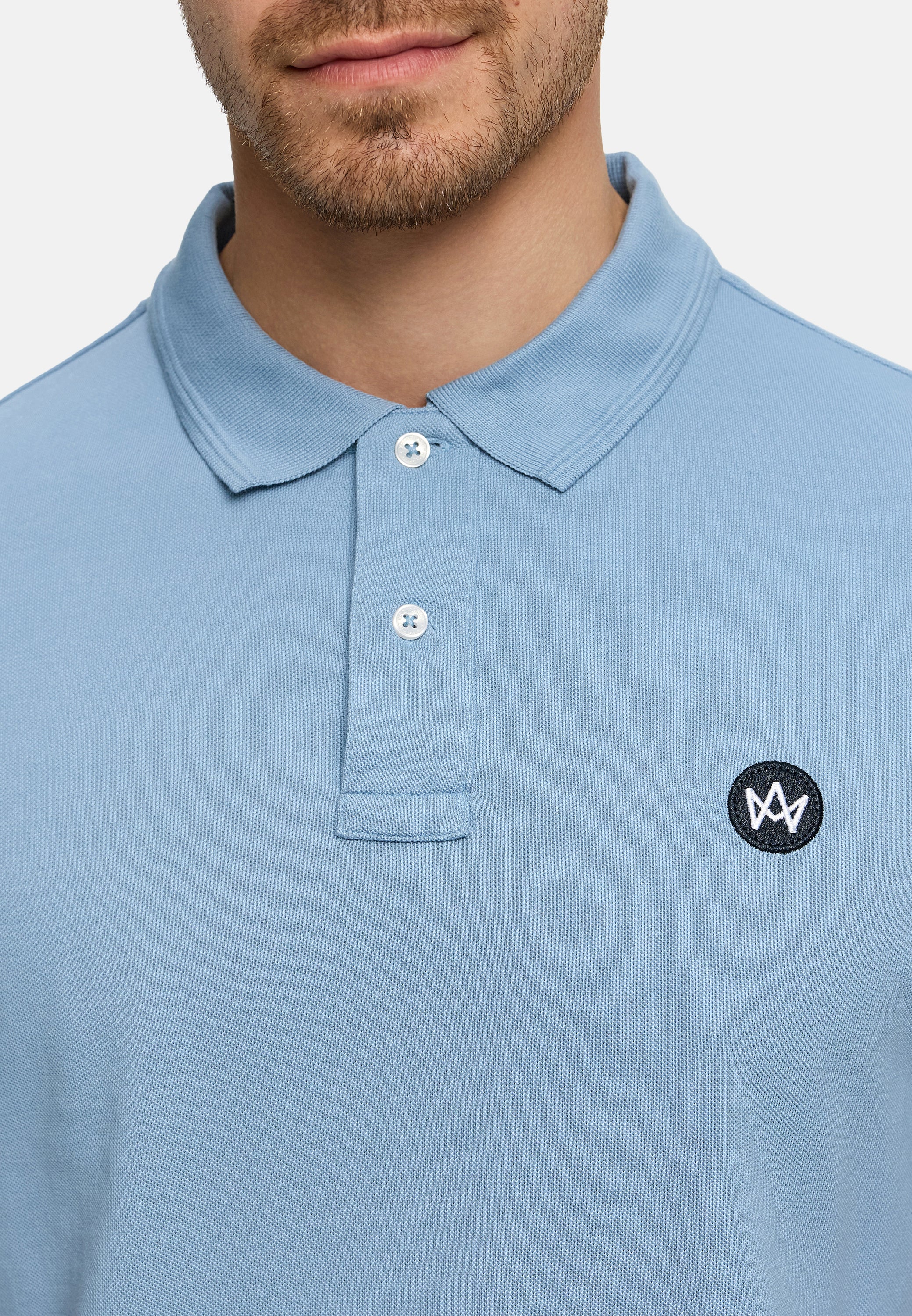 - Das Poloshirt ist ein klassisch geschnittenes Oberteil mit einem gerippten Polokragen und einer kurzen Knopfleiste mit zwei Knöpfen auf der Vorderseite.