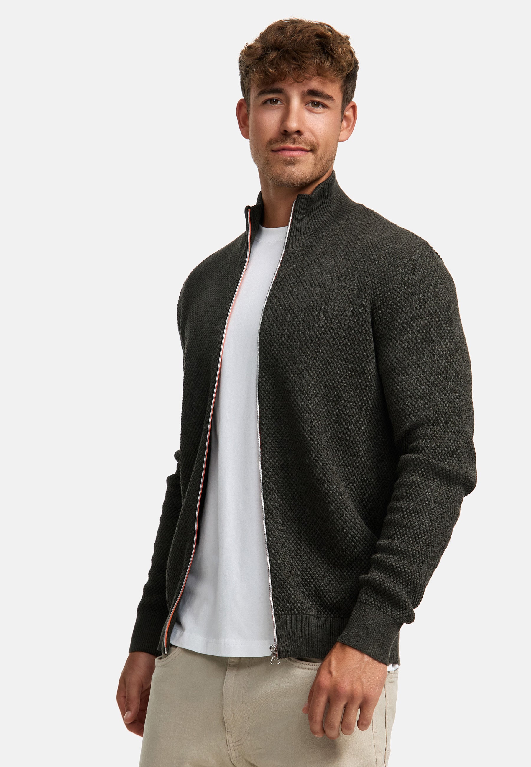 Strickjacke KSErik Zip Army Mix