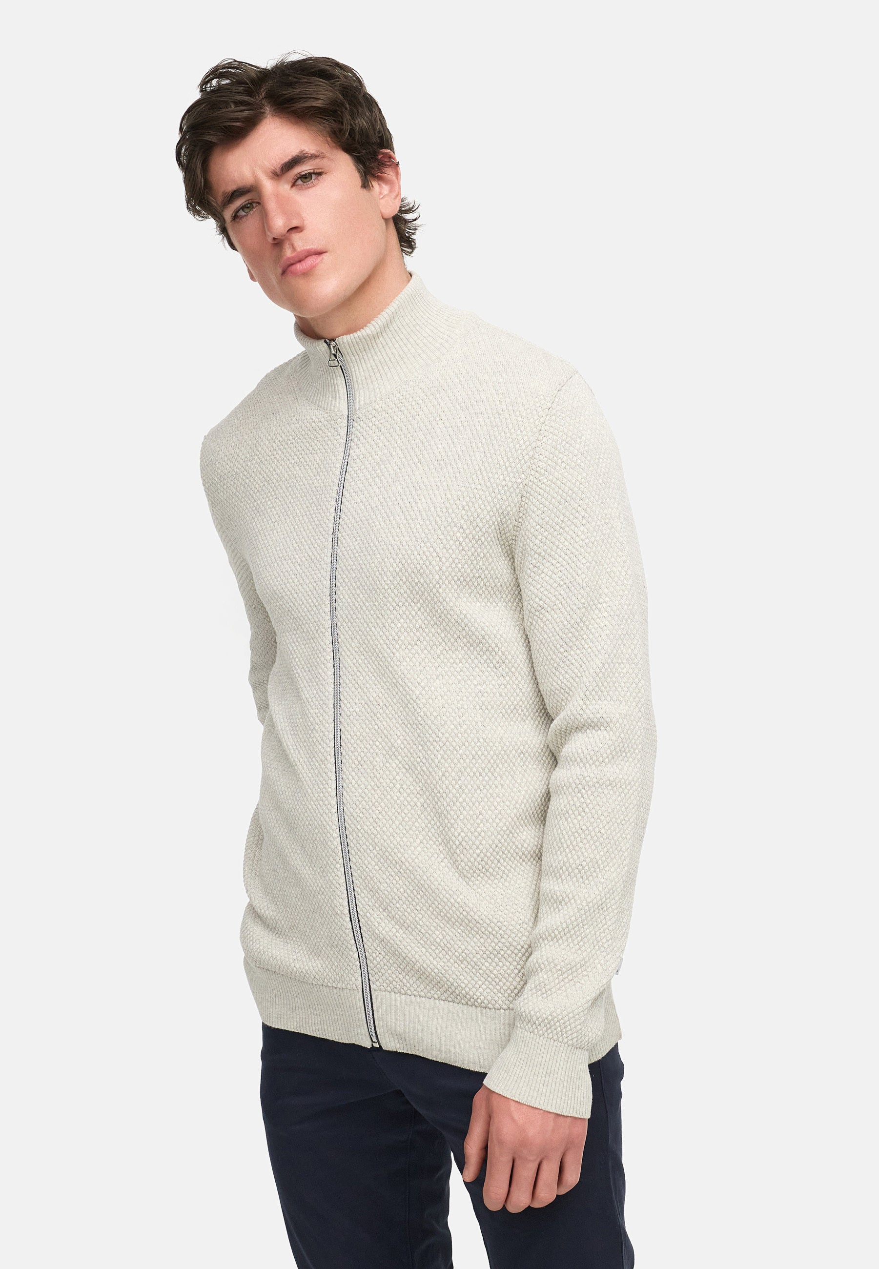 Strickjacke KSErik Zip Stone mix