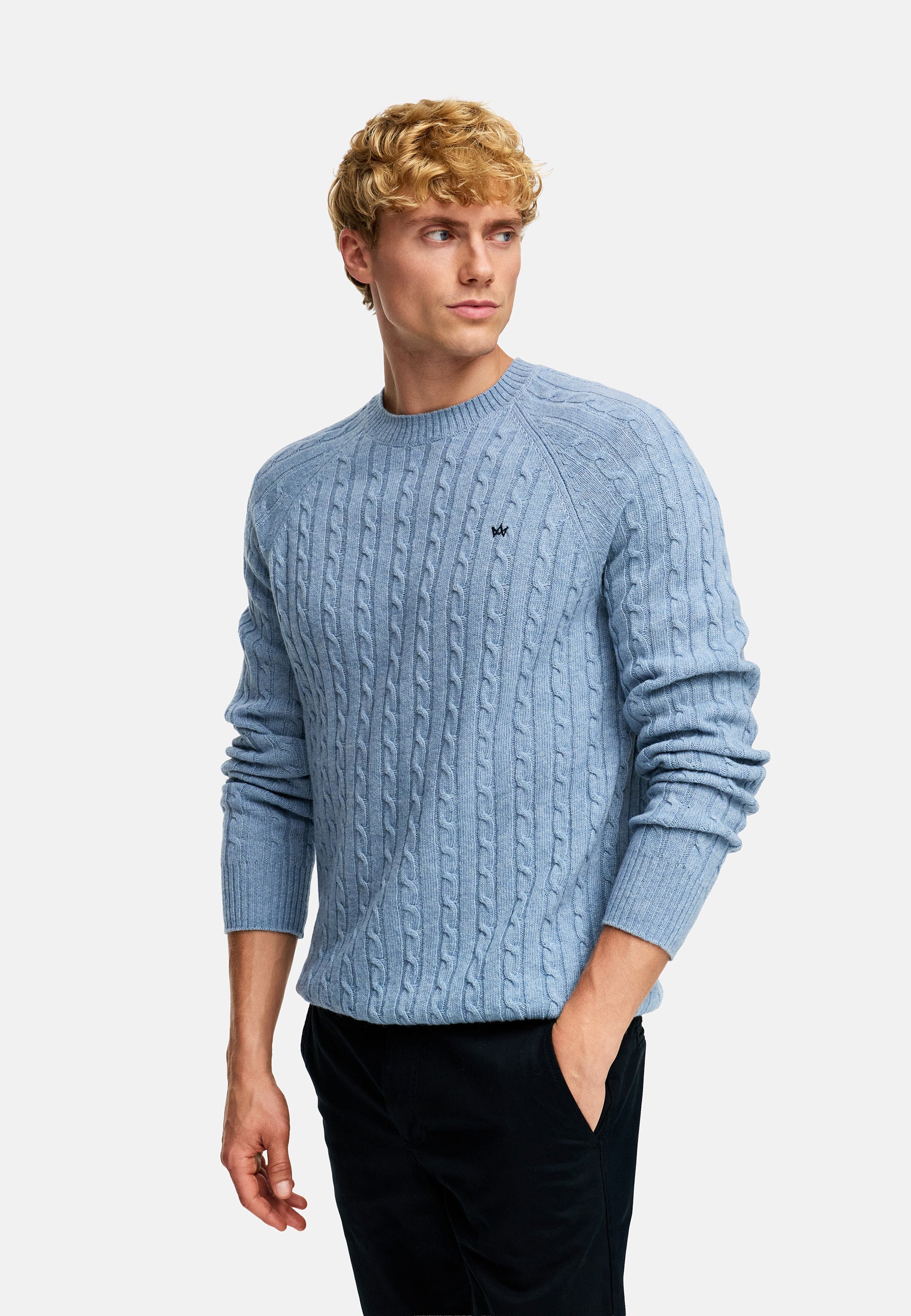 Strickpullover KSFlynn cabel crew neck knit Blue Shadow Mix